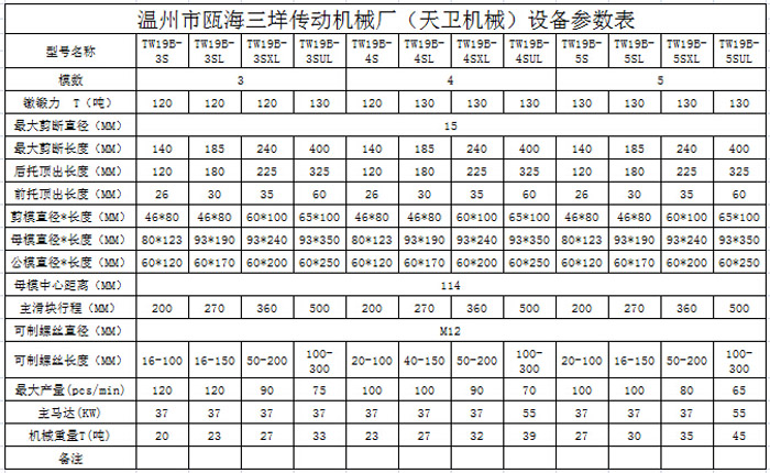您當(dāng)前的位置:首頁 / 產(chǎn)品中心 / 三模三沖冷鐓機(jī) / └ TW19B(M12)多工位冷鐓機(jī) / TW19B三模三沖多工位冷鐓機(jī)