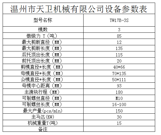 您當前的位置:首頁 / 產(chǎn)品中心 / 三模三沖冷鐓機 / └ TW17B(M10)多工位冷鐓機 / TW17B-3S全自動多工位冷鐓機