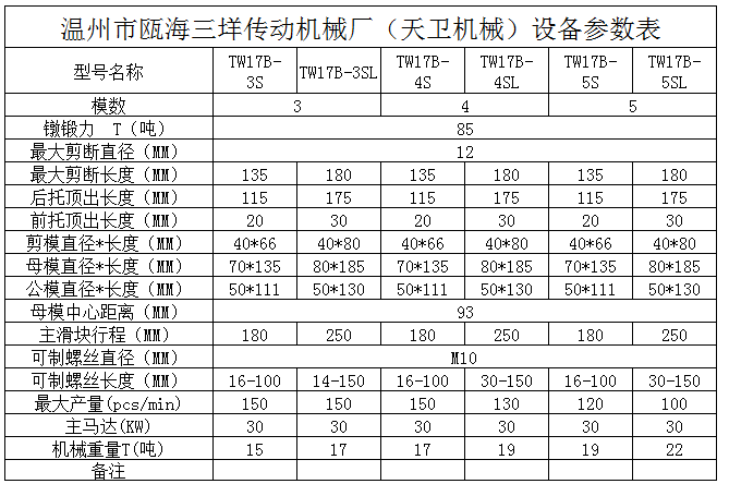 您當前的位置:首頁 / 產(chǎn)品中心 / 三模三沖冷鐓機 / └ TW17B(M10)多工位冷鐓機 / TW17B三模三沖多工位冷鐓機